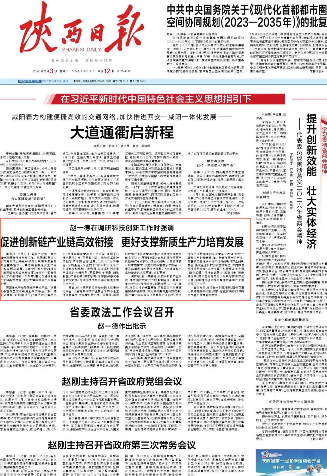 调研中,赵一德强调,科技创新和产业创新,是发展新质生产力的基本路径。要强化集成优势抓科技创新,全面加强“双一流”建设,推动大科学装置集群、实验室体系从建框架向强功能转变,努力多出高质量科技成果。要注重守牢实体经济根基抓产业创新,加快传统产业数字化网络化智能化改造,积极开辟新兴产业新赛道,加力培育发展未来产业。要着眼打通堵点卡点抓科技创新和产业创新融合,强化企业科技创新主体地位,协同推进科技成果转化“三项改革”、科技型企业发展“四个工程”、科技金融服务“五项机制”等走深走实,突出应用导向加大场景培育和开放力度,不断提升创新体系整体效能和产业体系现代化水平。